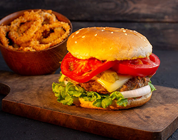 4 pieces of tender lamb chops lightly seasoned and charcoal grilled served with rice salad and sauces.
